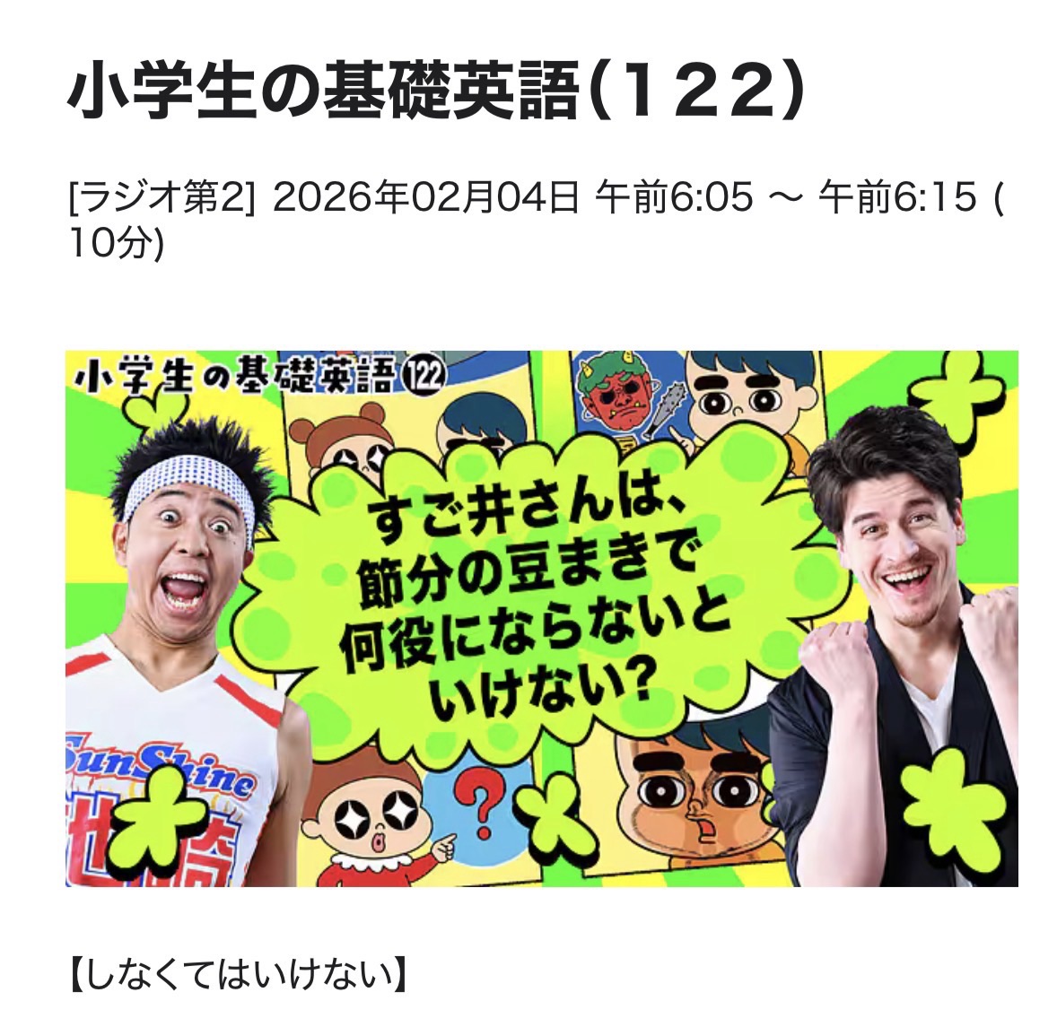 小学生の基礎英語 26/2/4(水)L122 ~しなくては、いけない。