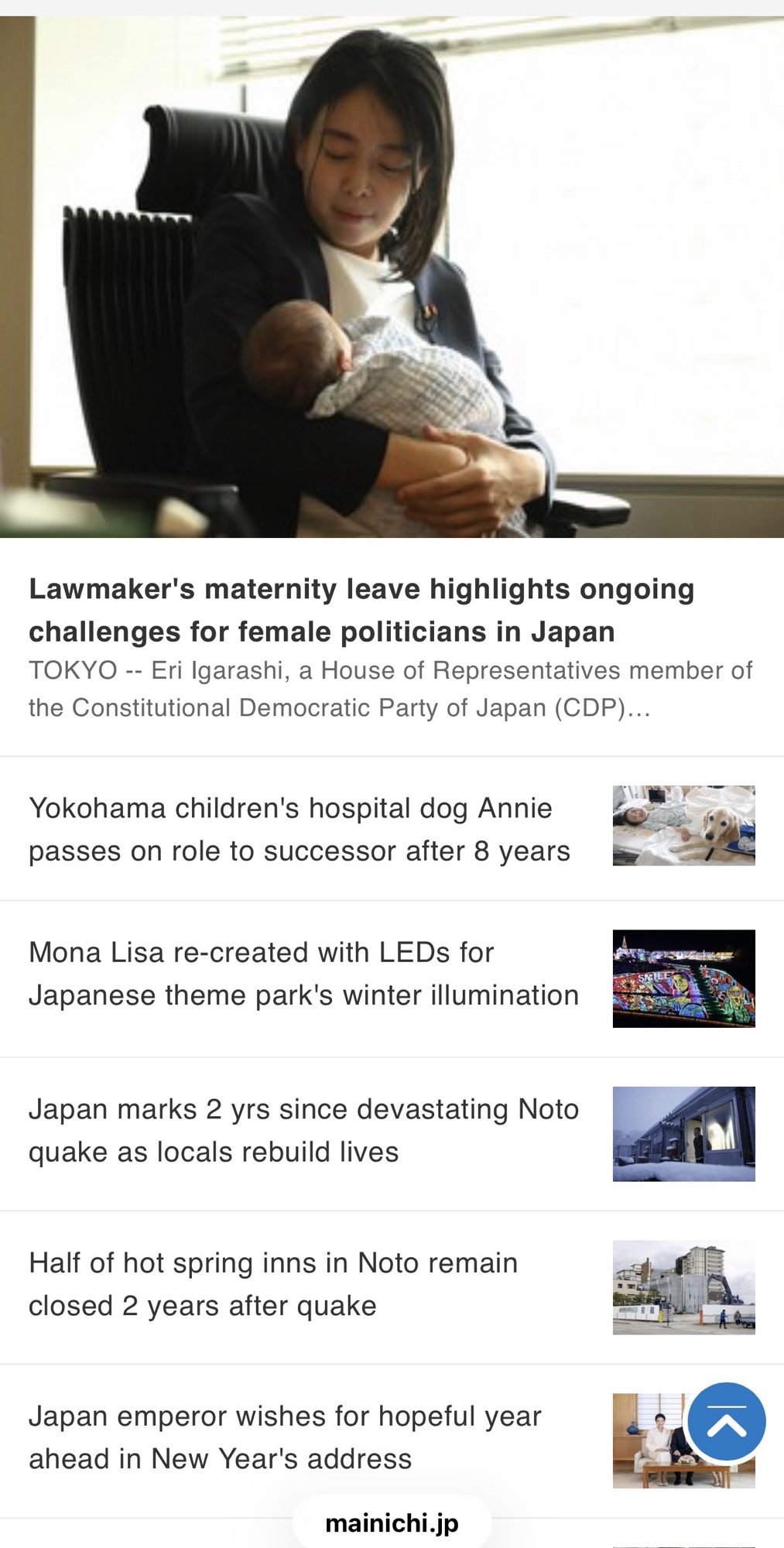 The Mainichi News: Lawmaker’s maternity leave highlights ongoing challenges for female politicians in Japan