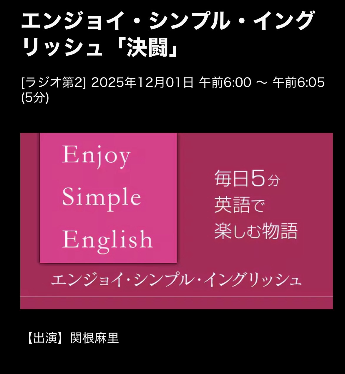 Enjoy Simple English 25/12/1(月)The Duel 決閱