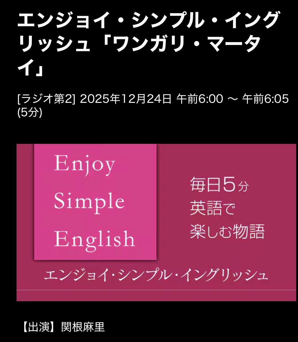 Enjoy Simple English 25/12/24(水)Wangari Maathai ワンガリ・マータイ