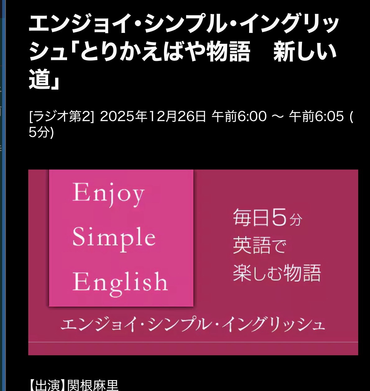 Enjoy Simple English 25/12/26(金)The Torikaebaya Tale – Episode 4 (Finale) The Change 「とりかえばや物語」 最終話 「新しい道」