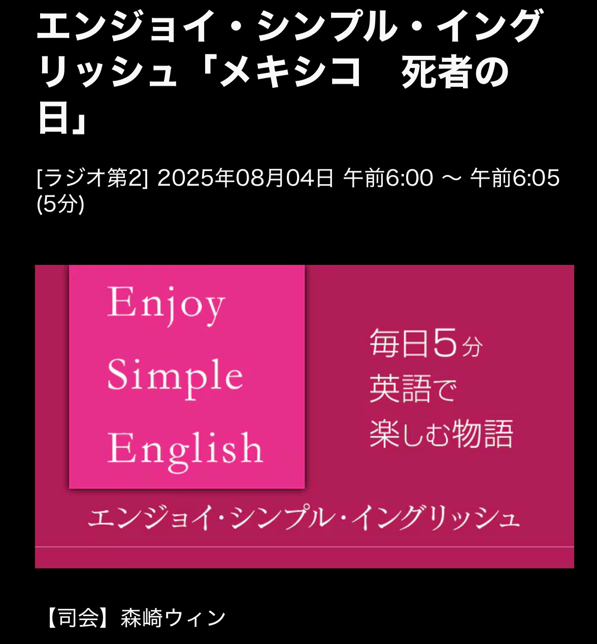 Enjoy Simple English 25/8/4(月) Day of the Dead メキシコ 「死者の日」