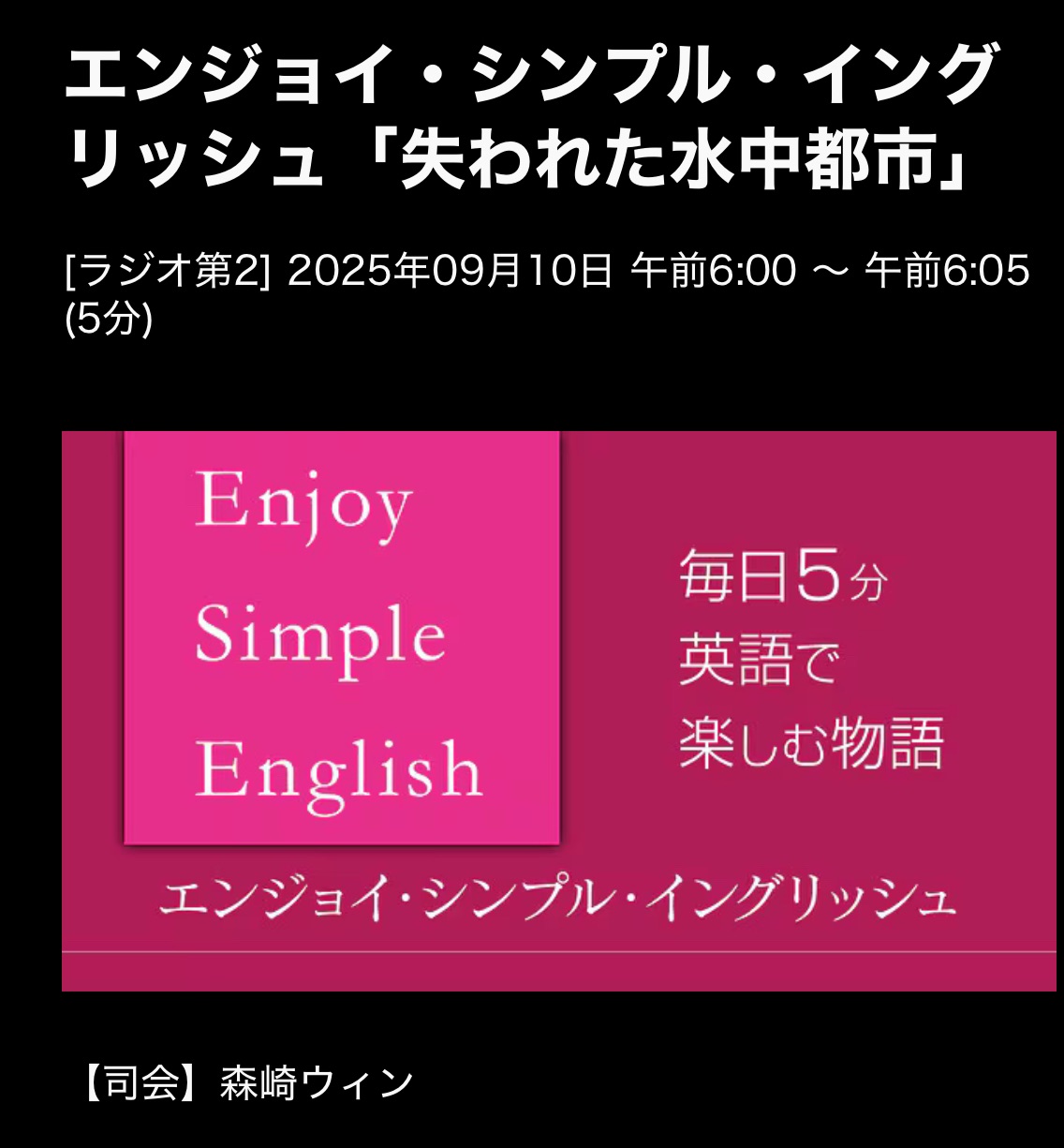 Enjoy Simple English 25/9/10(水)Discovering a Sunken City 失われた水中都市