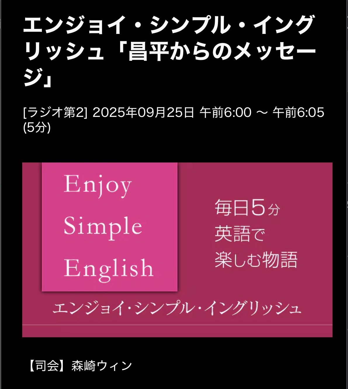 Enjoy Simple English 25/9/25(木)Message from Shohei 昌平からのメッセージ