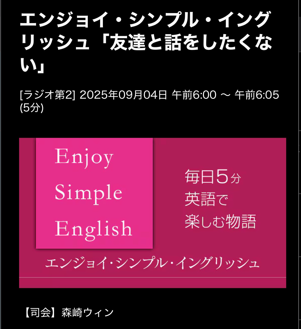 Enjoy Simple English 25/9/4(木)I Don’t Want to Speak to My Friend 友達と話をしたくない