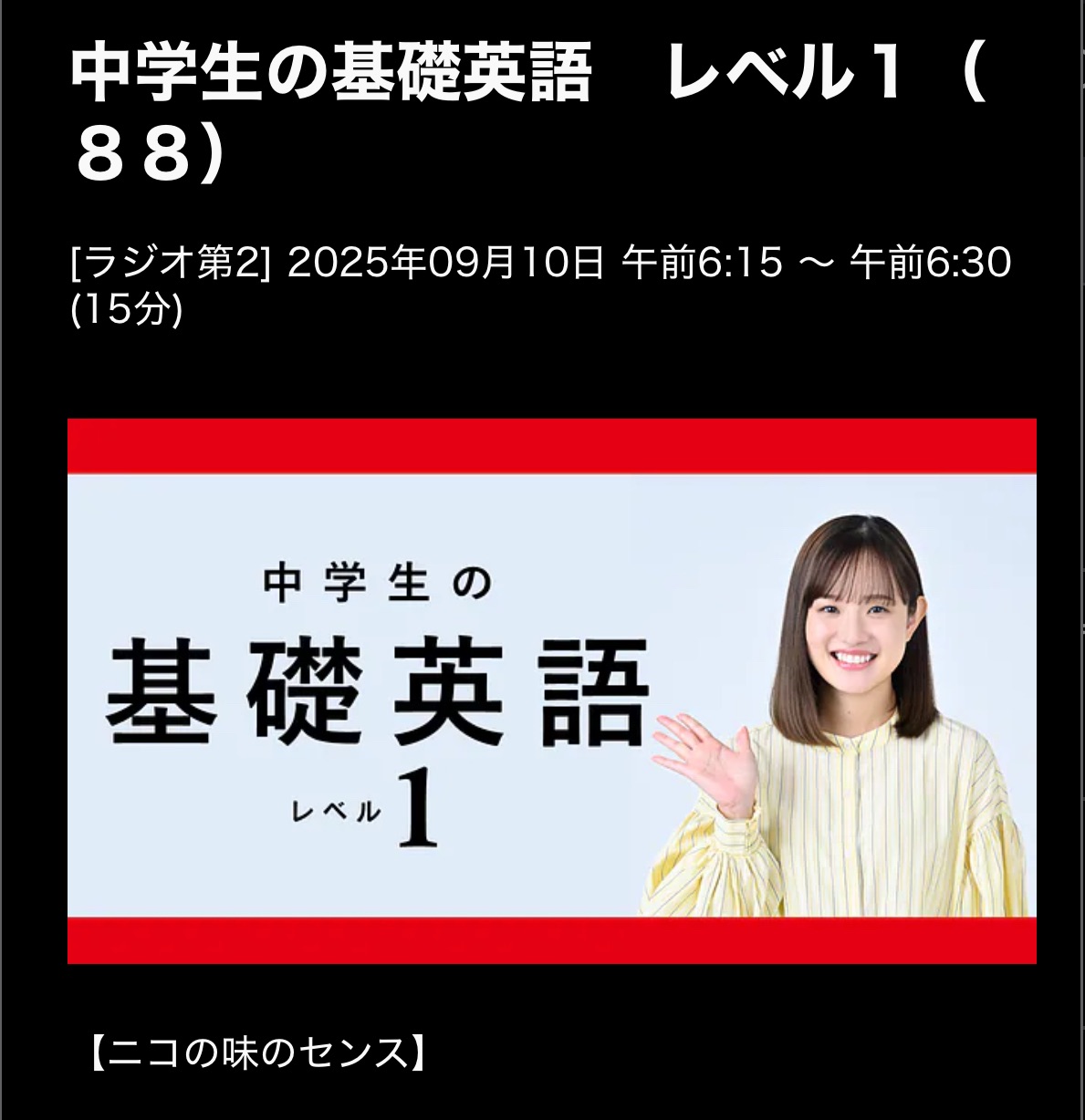 基礎英語1 25/9/10(水)L88ニコの味のセンス