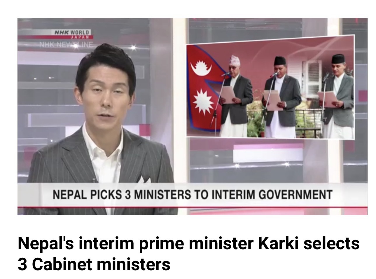 暫定首相のスシラ・カルキ氏(元最高裁長官)は、K.P.シャルマ・オリ首相の辞任を受けて就任しました。彼女は月曜に財務相と内務相を含む3人の新閣僚を暫定内閣に加えました。