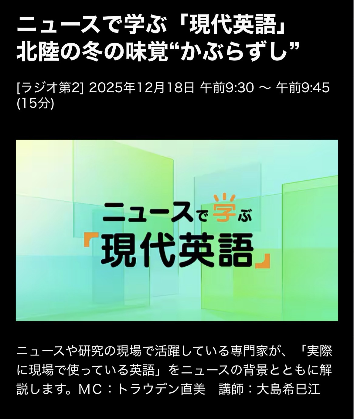 ニュースで学ぶ現代英語 25/12/18(木)北陸の冬の味覚“かぶらずし”