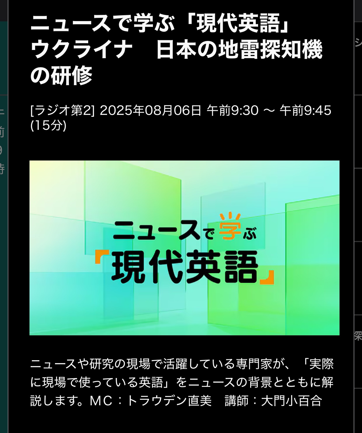 ニュースで学ぶ現代英語 25/8/6(水)ウクライナ 日本の地雷探知機の研修