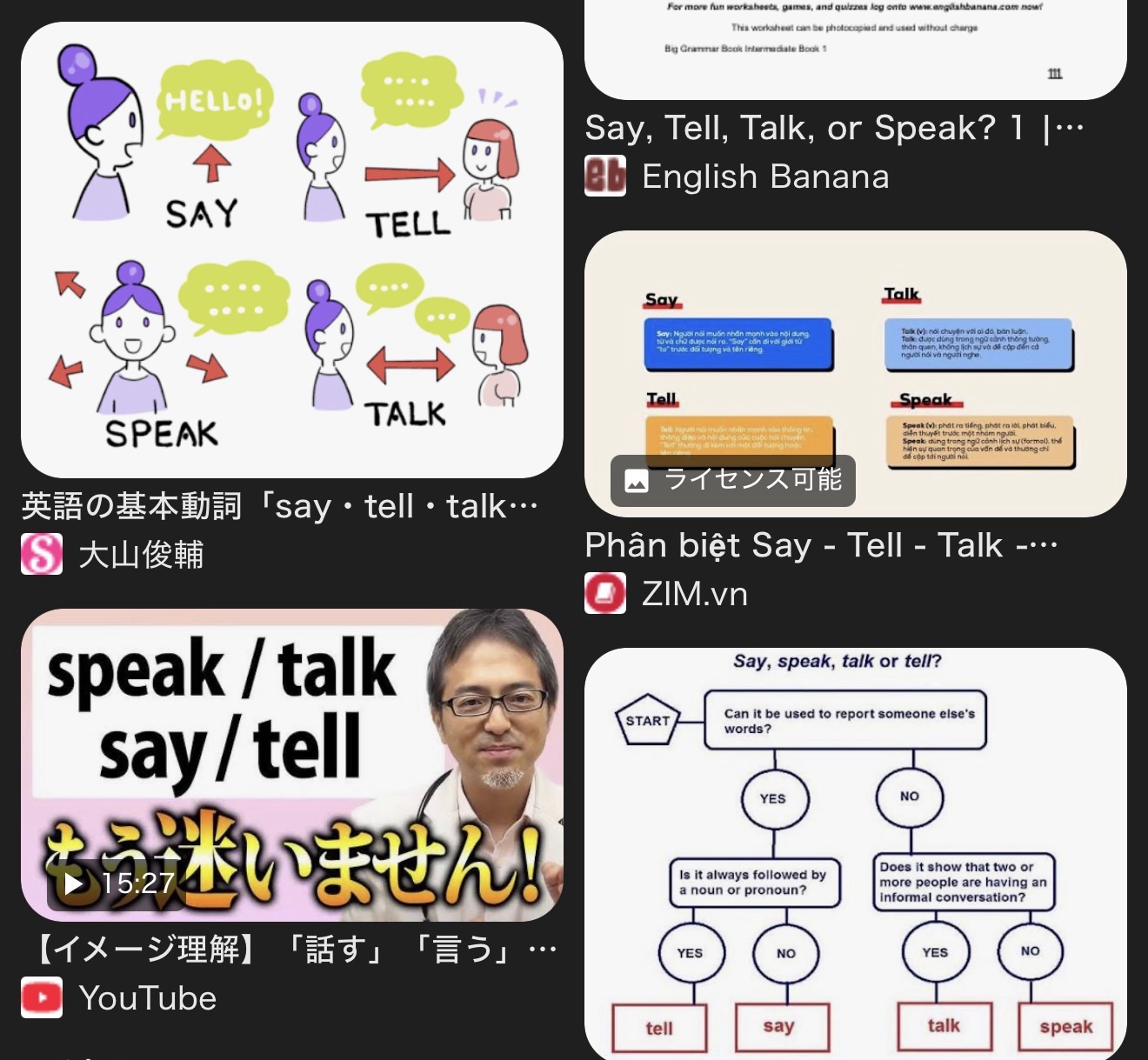 実際の会話の流れ(文脈)から「say / tell / talk / speak」を自然に選ぶ練習