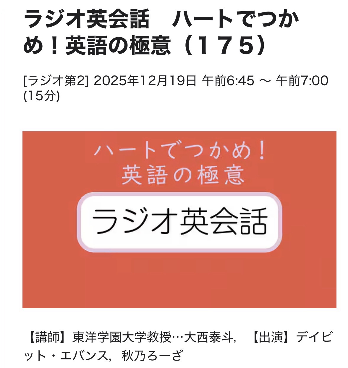 ラジオ英会話 25/12/19(金)L175 今週のREVIEW