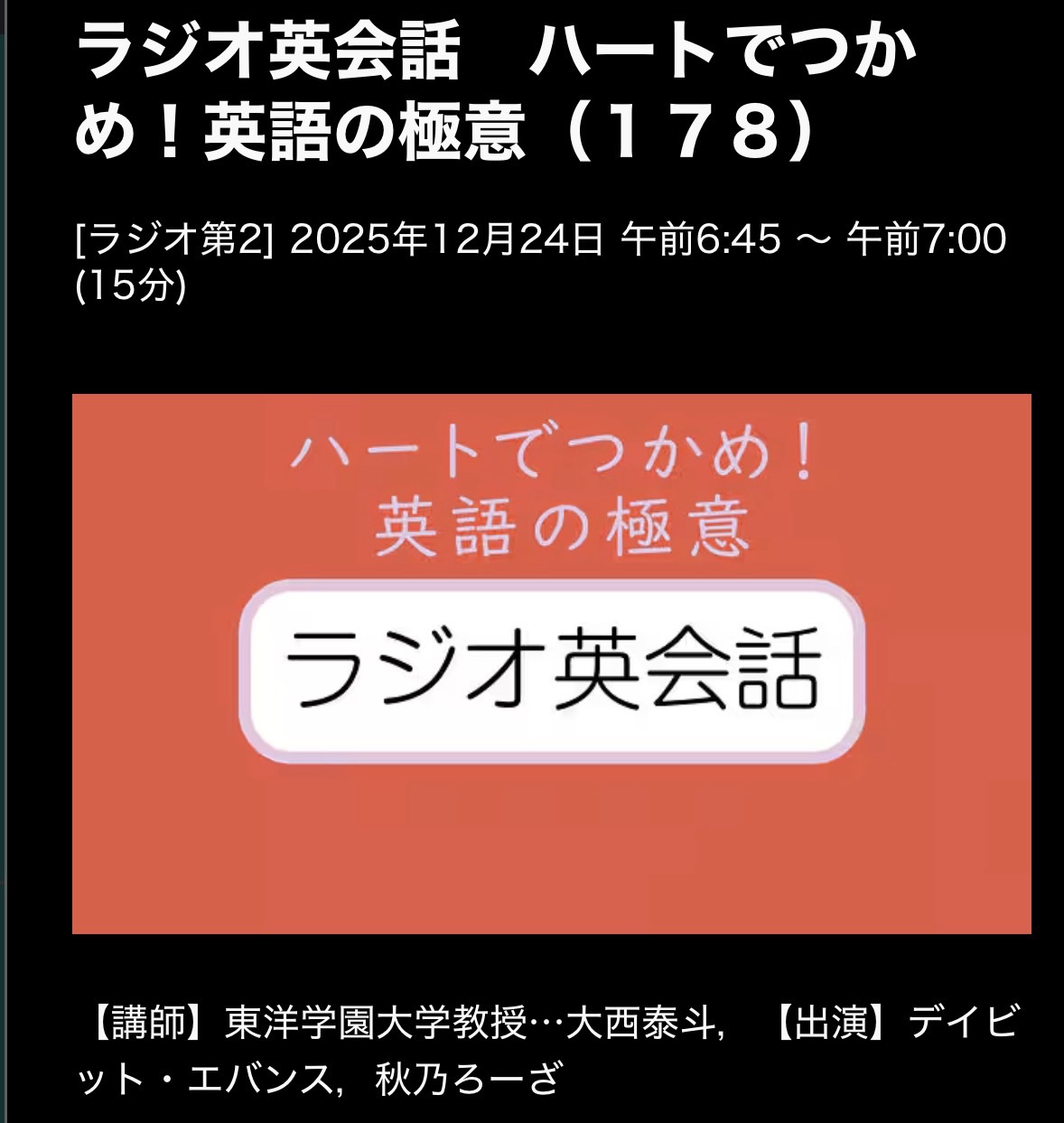 ラジオ英会話 25/12/24(水)L178 out