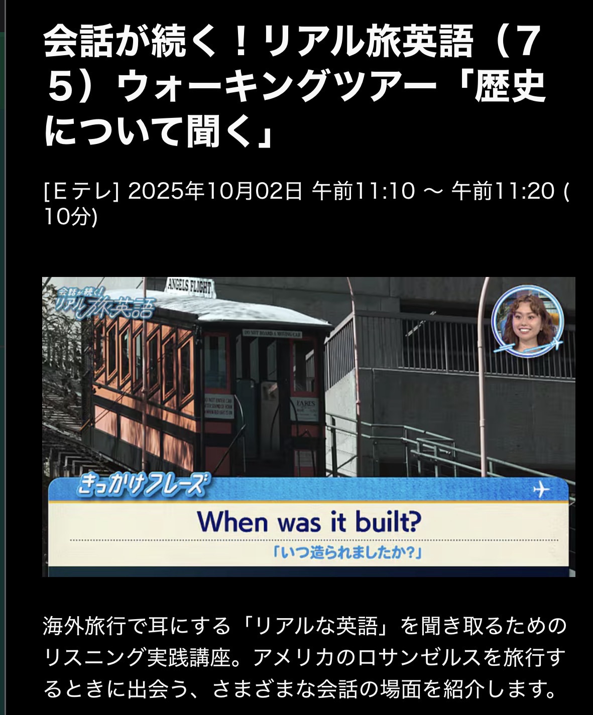 会話が続く! リアル旅英語 25/10/2(木)L75歴史について聞く