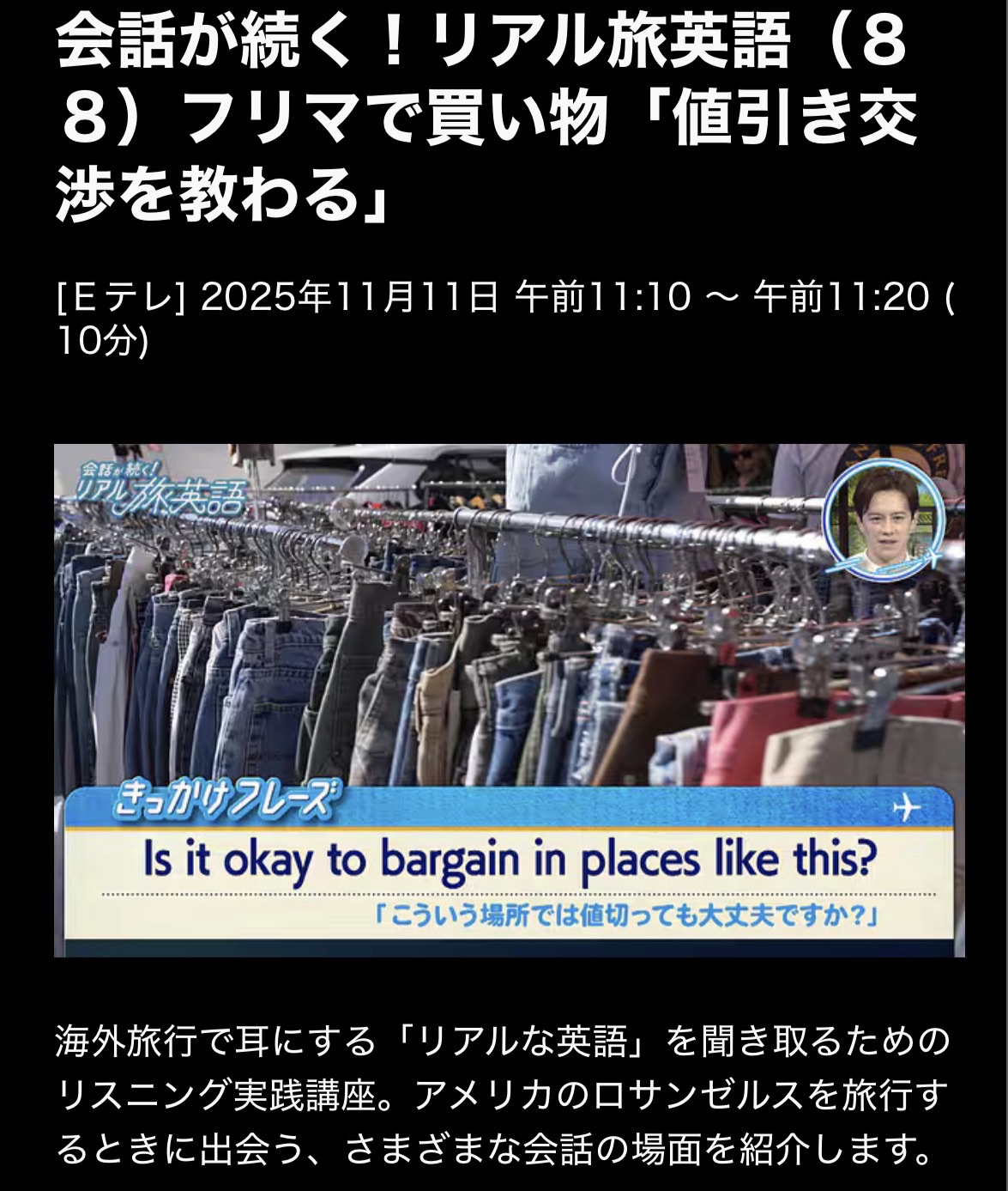 会話が続く! リアル旅英語 25/11/11(火)L88 値引き交渉を教わる