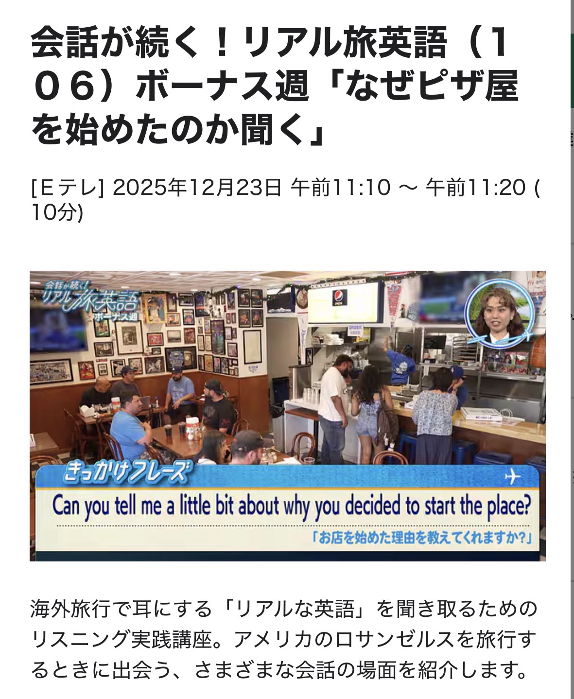 会話が続く! リアル旅英語 25/12/23(火)L106 なぜピザ屋を始めたのか聞く