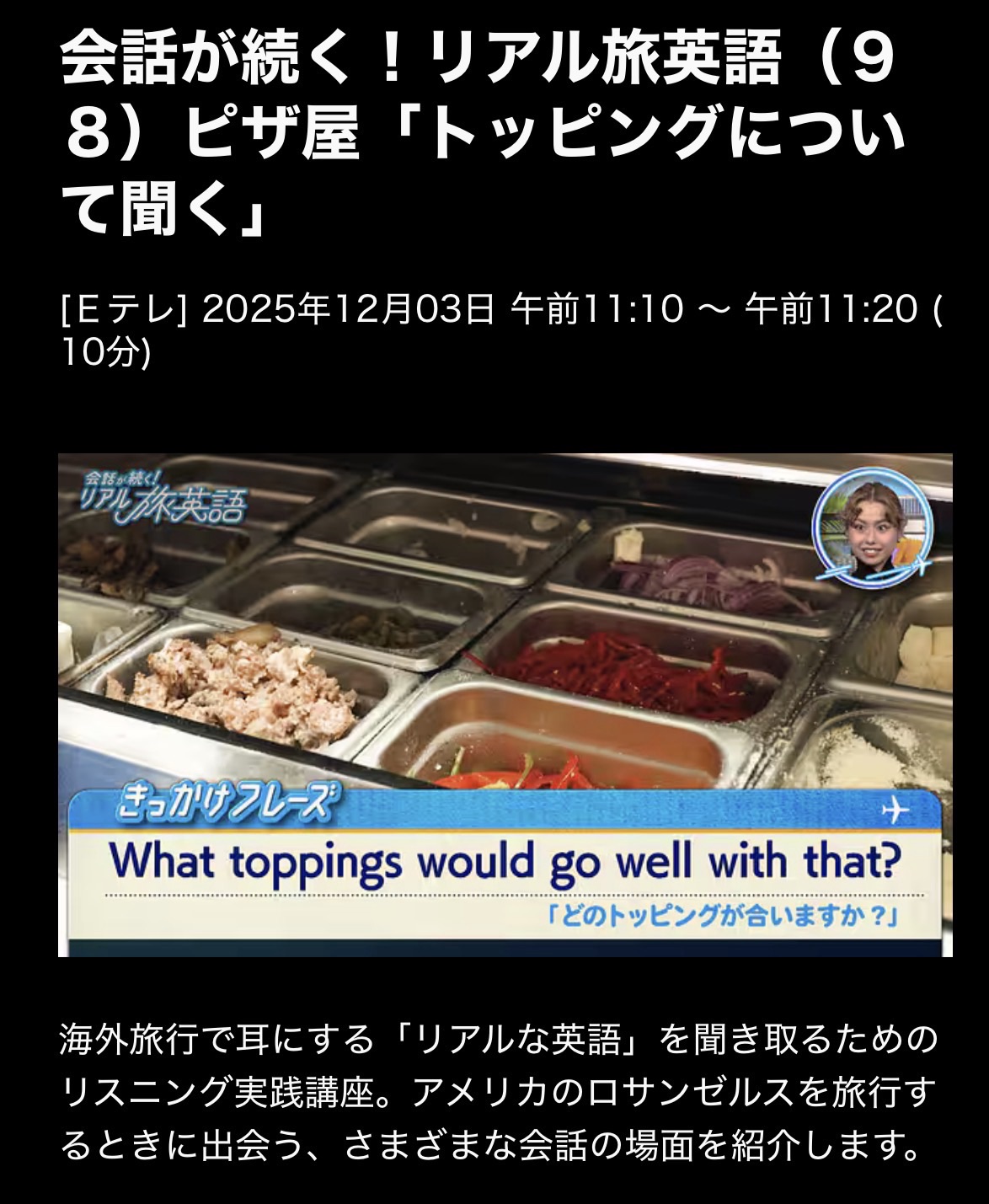 会話が続く! リアル旅英語 25/12/3(水)L98 トッピングについて聞く