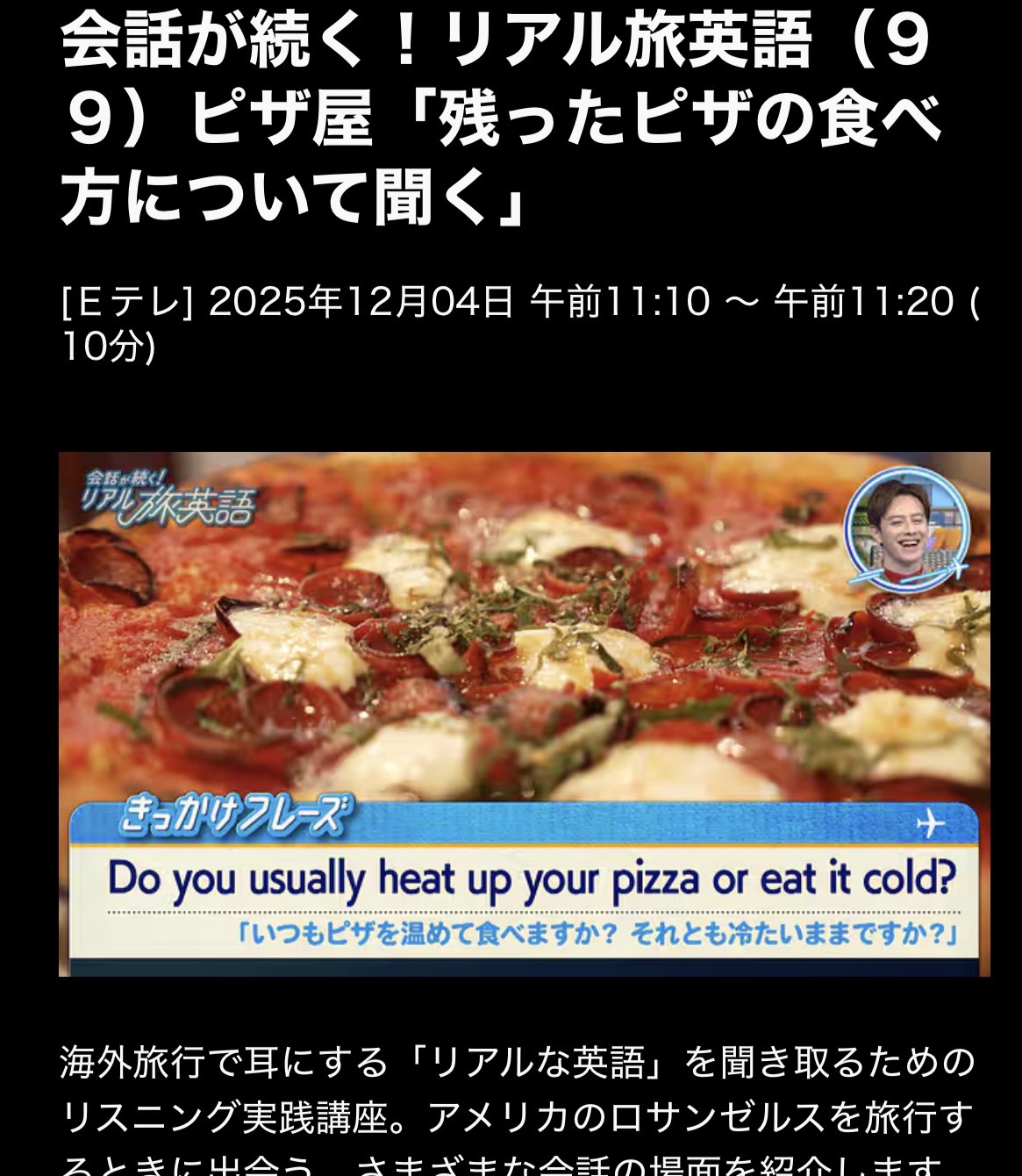 会話が続く! リアル旅英語 25/12/4(木)L99 残ったピザの食べ方について聞く