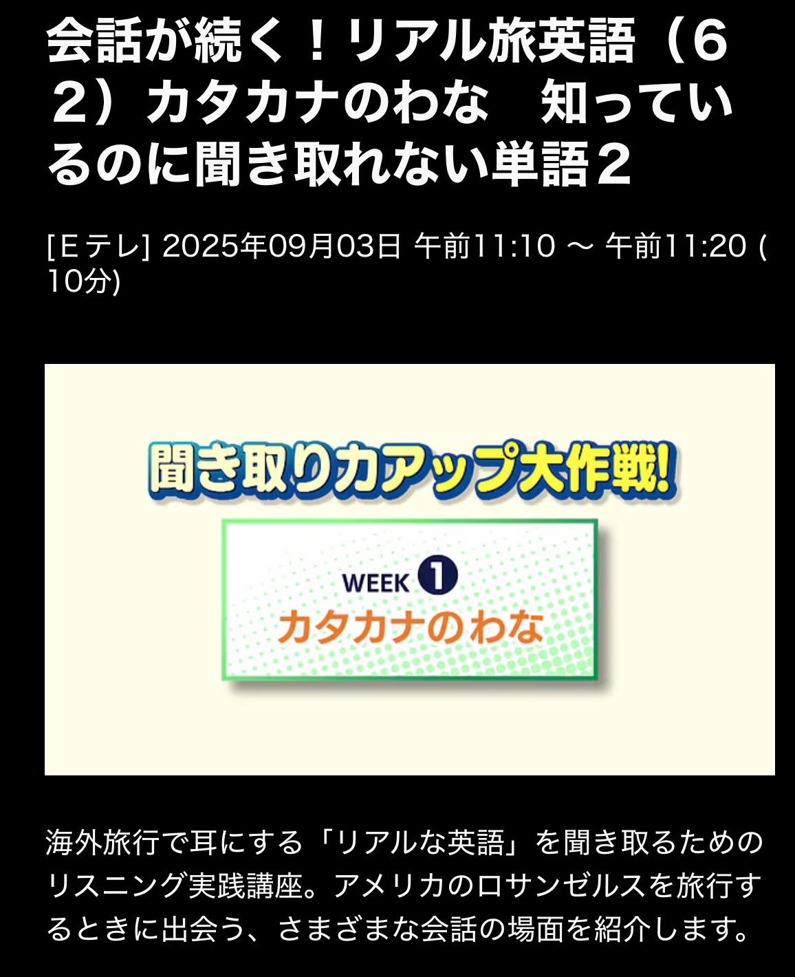 会話が続く! リアル旅英語 25/9/3(水)L62知っているのに聞き取れない単語2