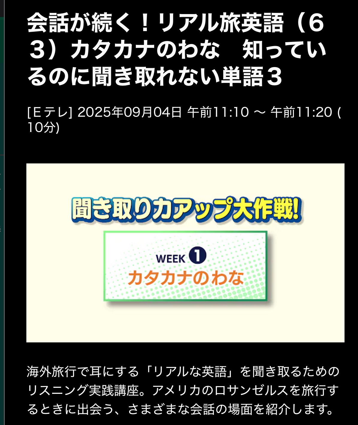 会話が続く! リアル旅英語 25/9/4(木)L63カタカナのわな