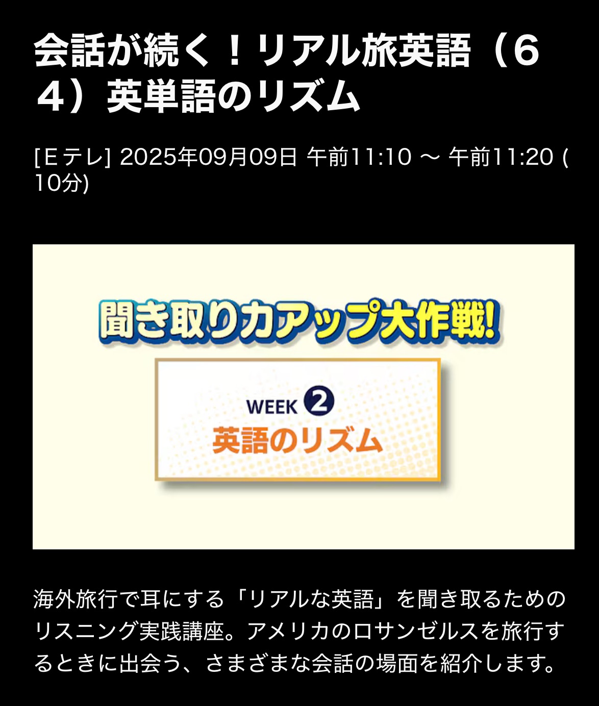 会話が続く! リアル旅英語 25/9/9(火)L64英単語のリズム