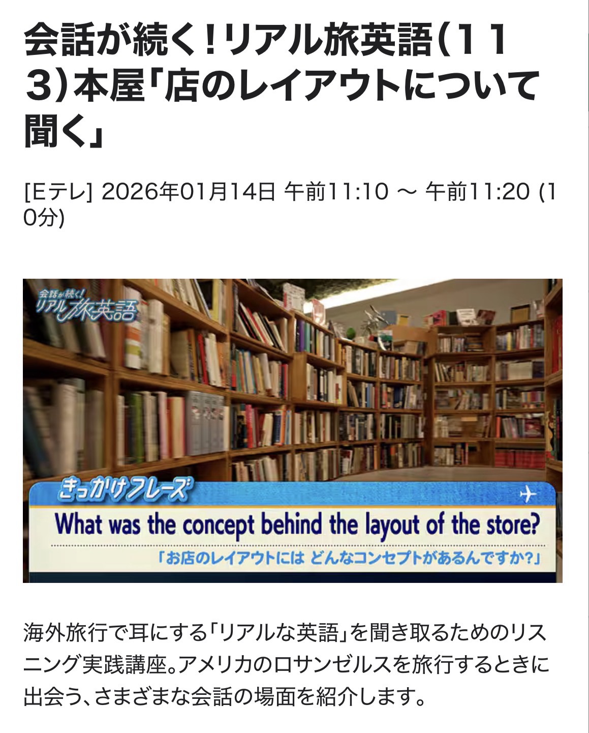 会話が続く! リアル旅英語 26/1/14(水)L113復習テスト