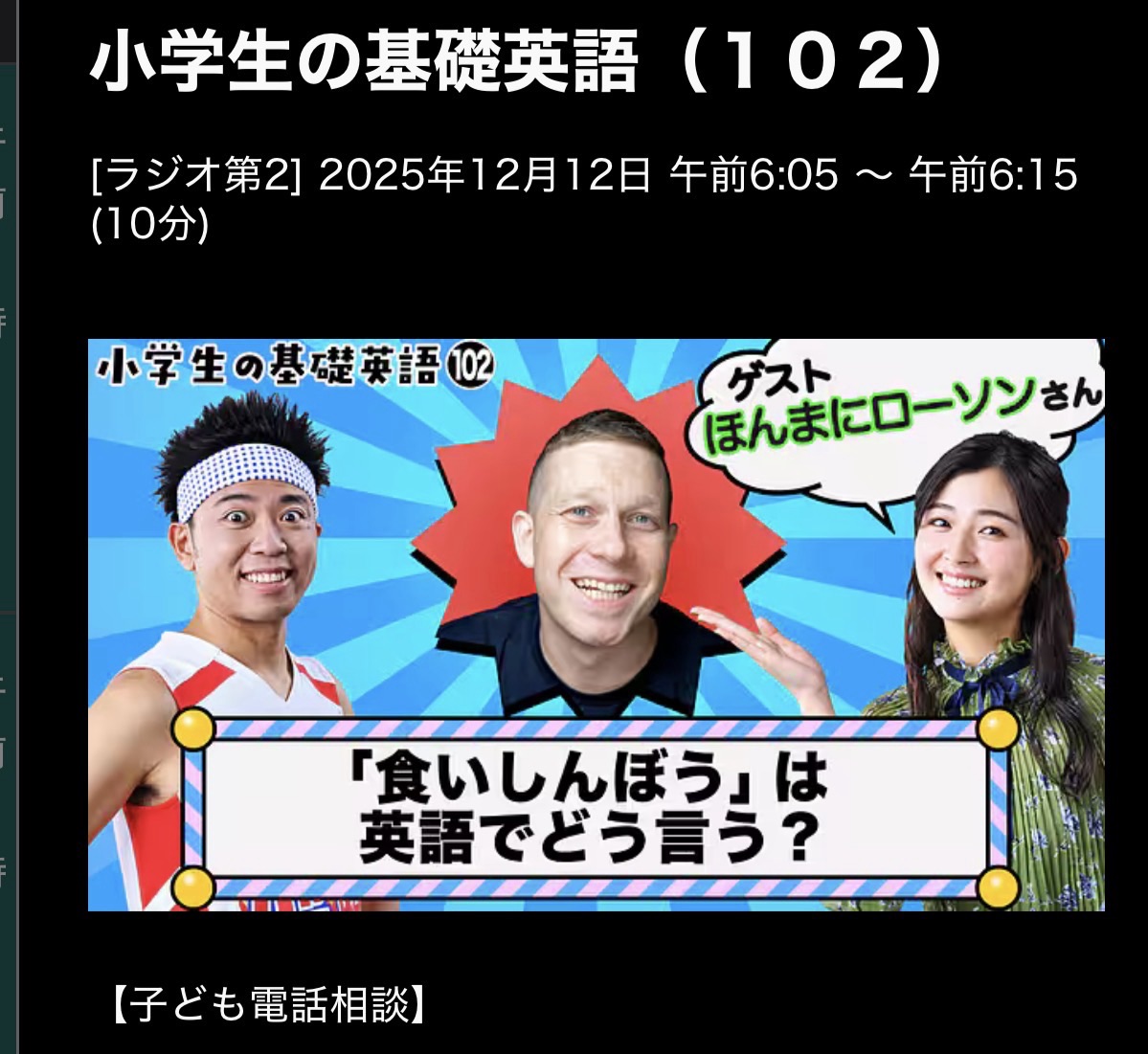 小学生の基礎英語 25/12/12(金)L102 子ども電話相談