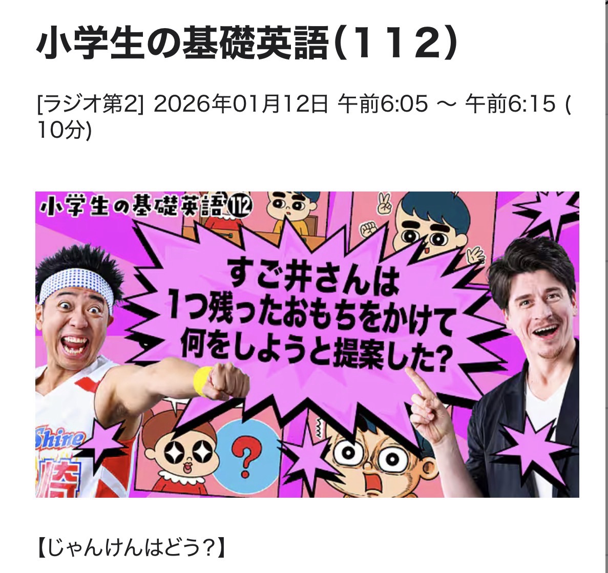 小学生の基礎英語 26/1/12(月)L112じゃんけんはどう?