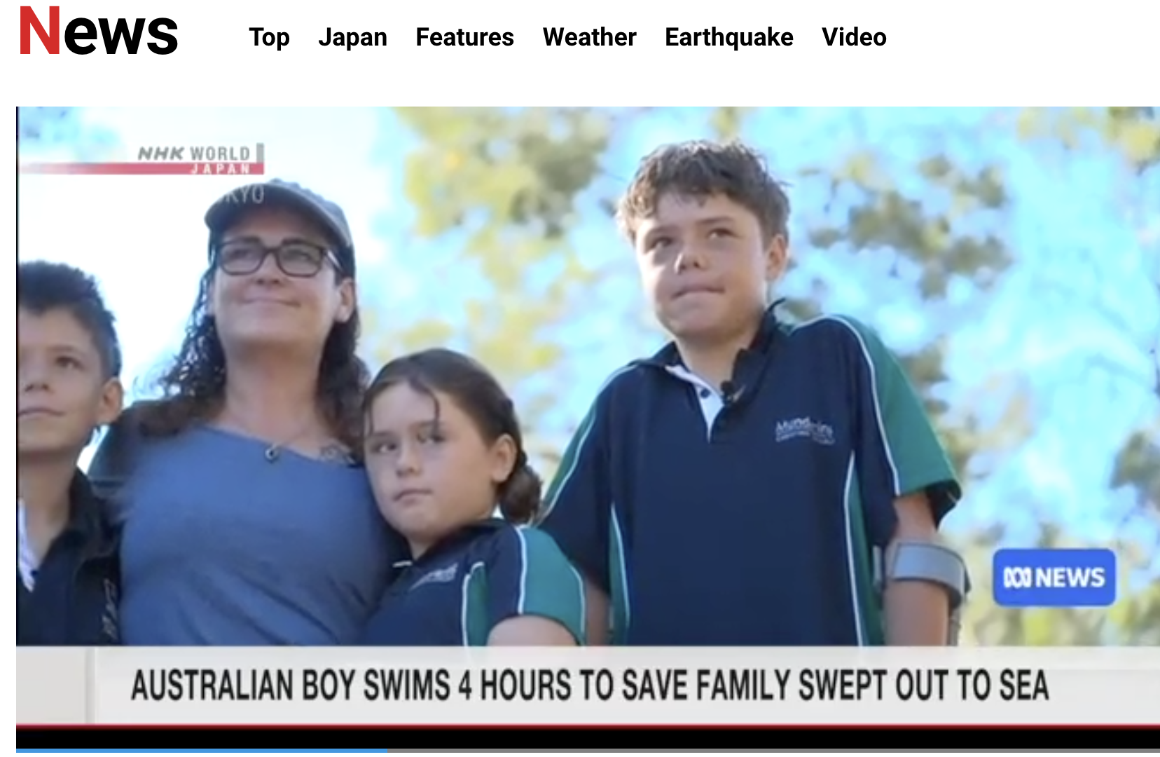 ニュースで学ぶ現代英語 26/2/23(月)豪の少年 海を4時間泳ぎ家族救出
