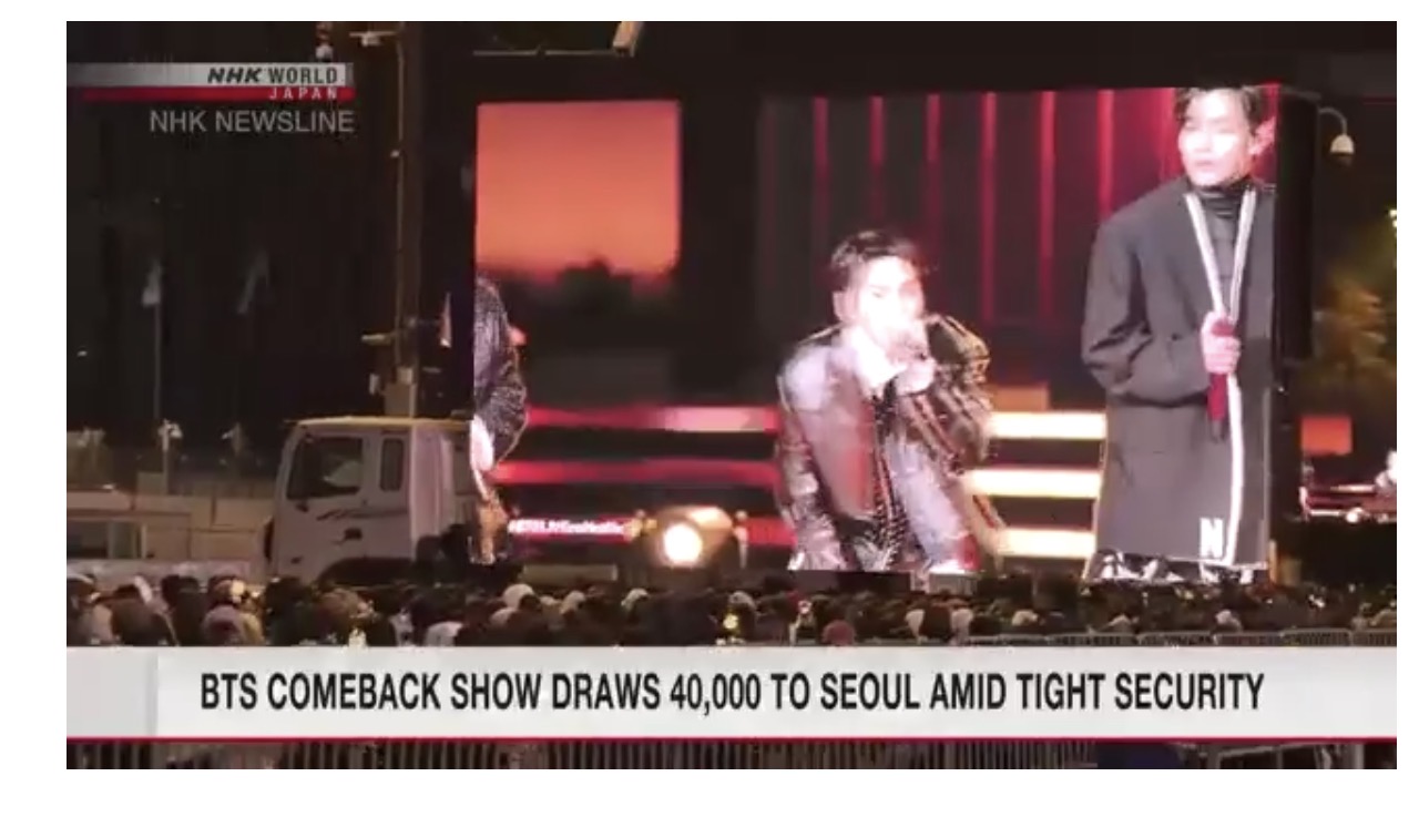 K-POPグループBTSは、強化された警備体制の中、世界中から4万人以上のファンをソウルに集め、カムバック公演を行いました。
