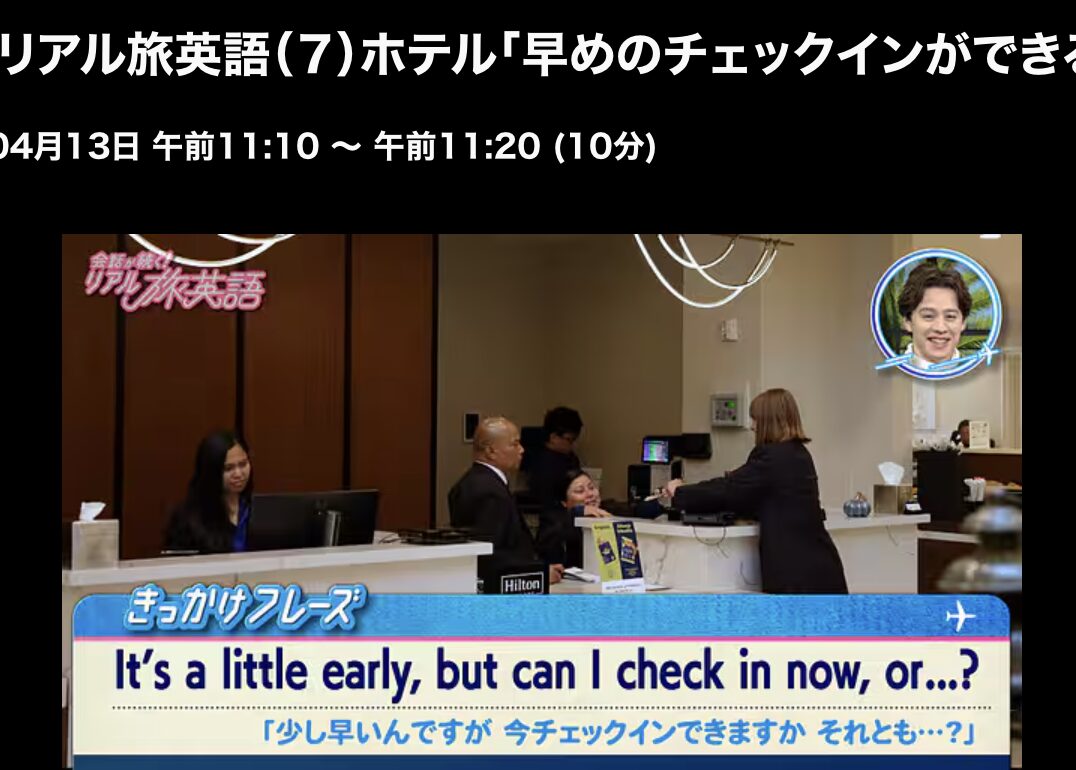 会話が続く!リアル旅英語 26/4/13(月)L7 早めのチェックインができるか聞く