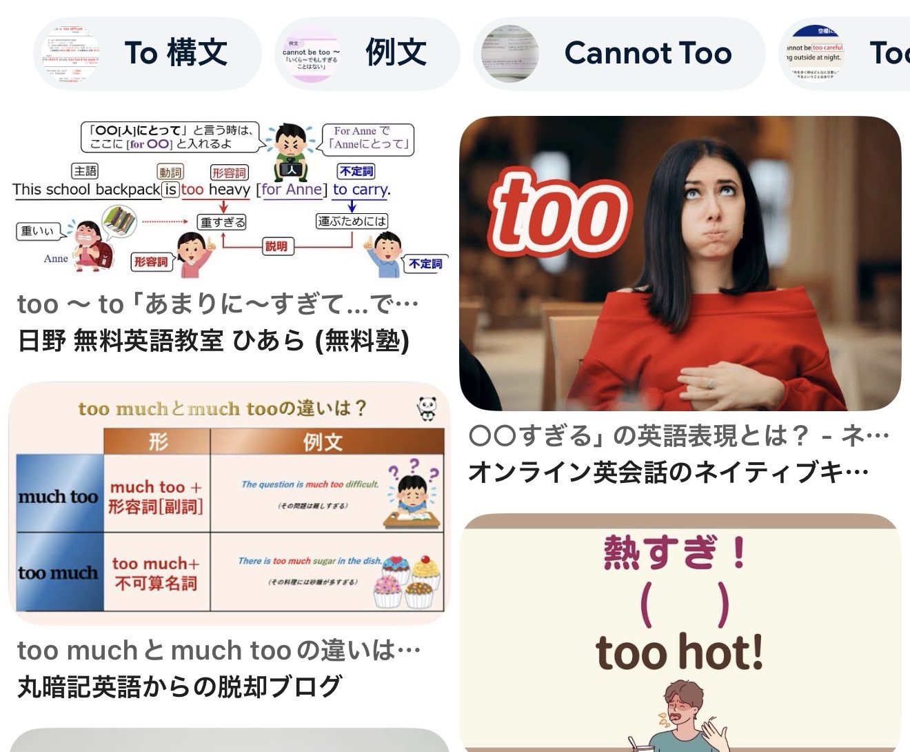 too + 形容詞 は会話では便利ですが、