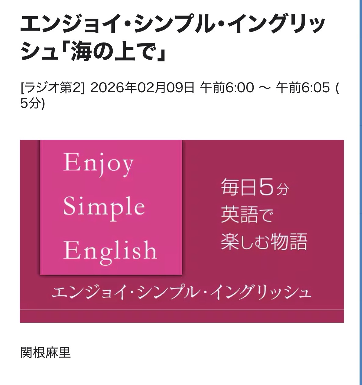 Enjoy Simple English 26/2/9(月)On a Cruise Ship 海の上で