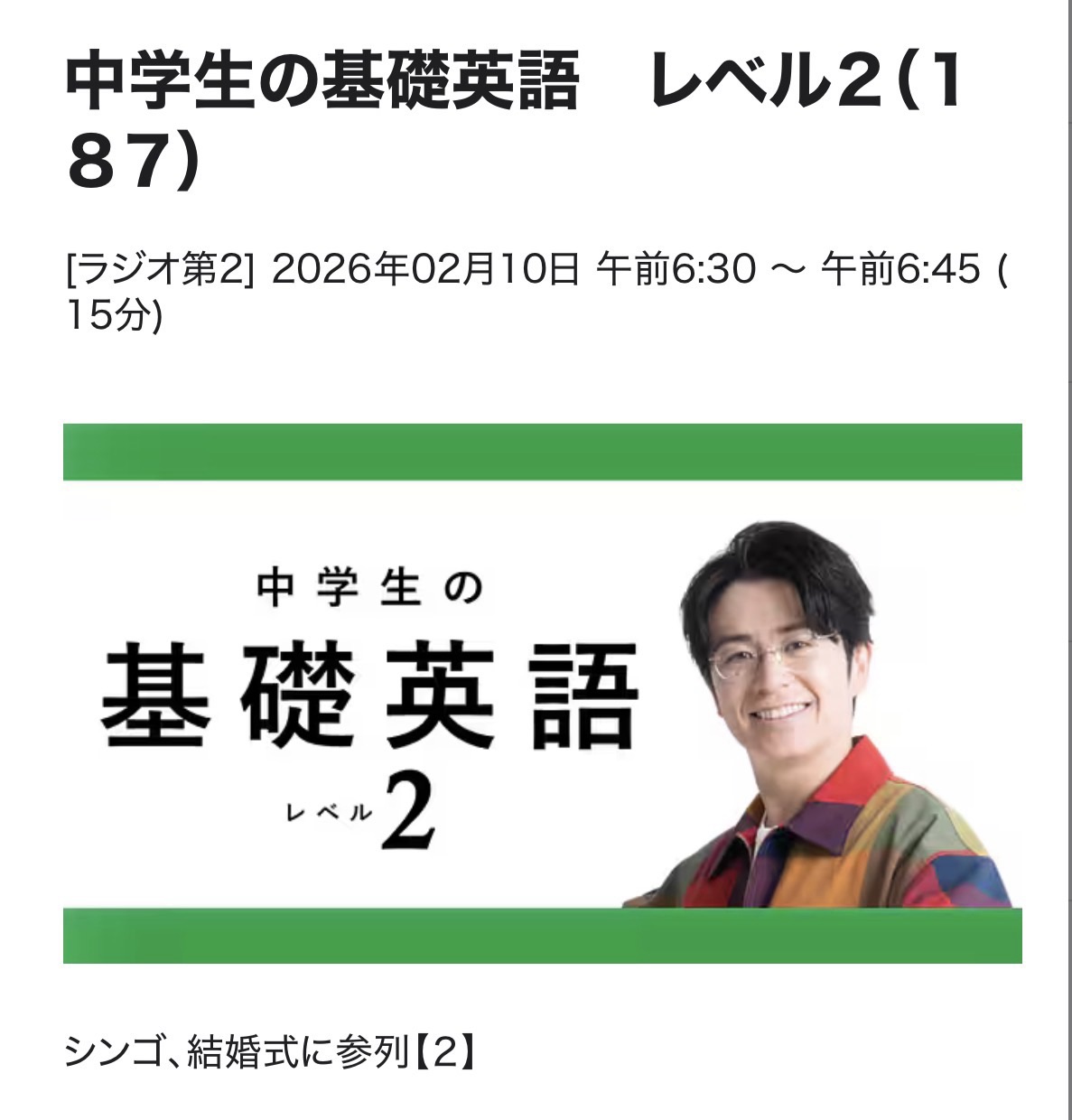 基礎英語2 26/2/10(火)L187(2)シンゴ、結婚式に参列