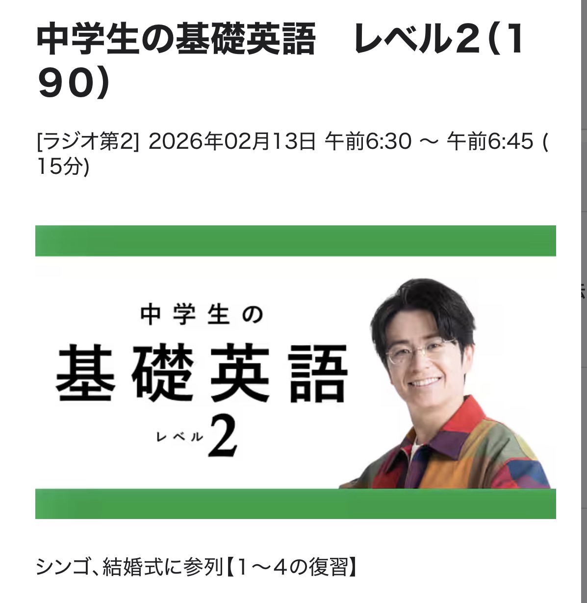 基礎英語2 26/2/13(金)L190(5)シンゴ、結婚式に参列