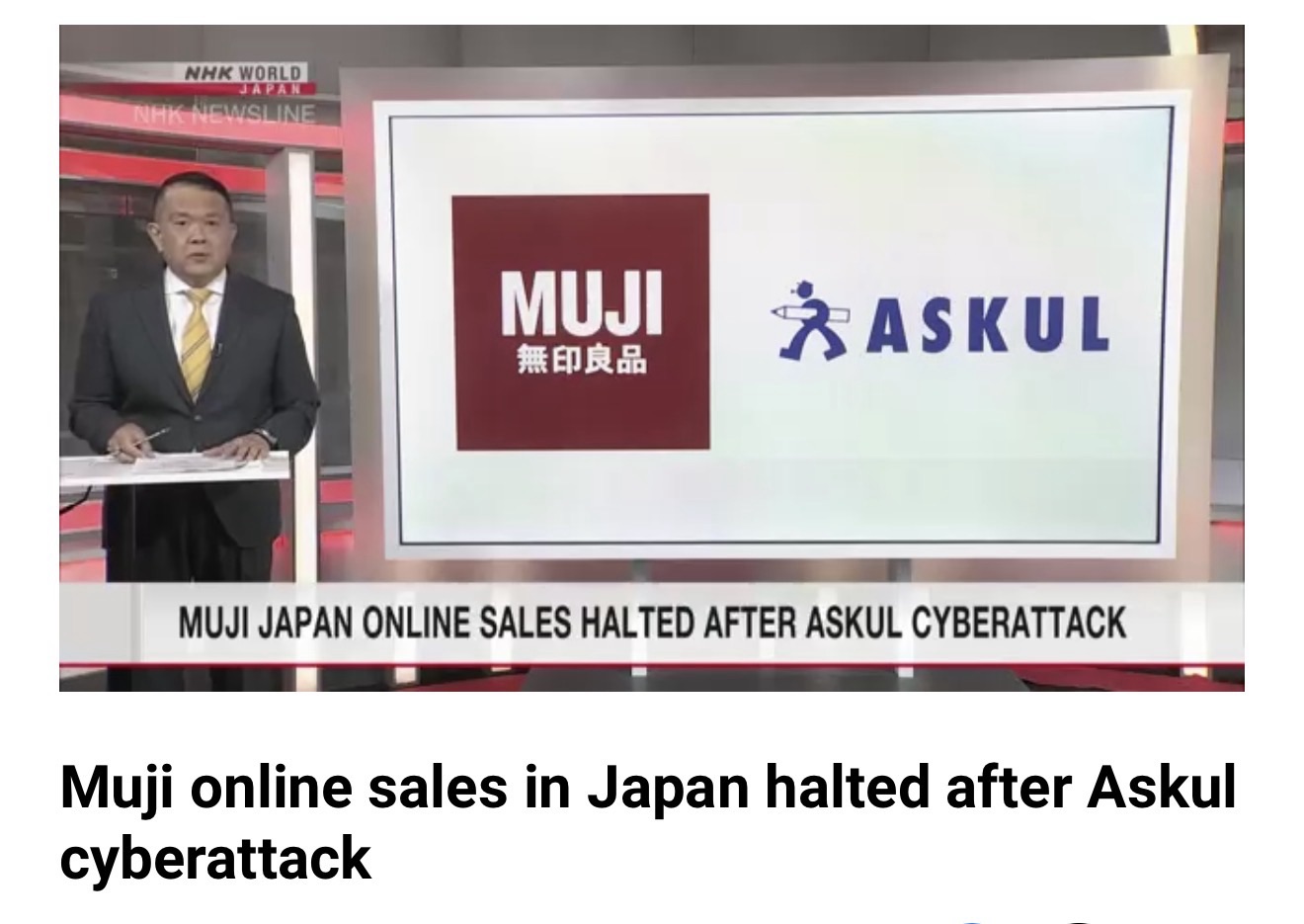 Deliveries of some Muji items are outsourced to a subsidiary of Askul. Muji’s online store in Japan has been down since late Sunday because of that link. Ryohin Keikaku, the operator of Muji outlets, says it cannot say when online services will be restored.