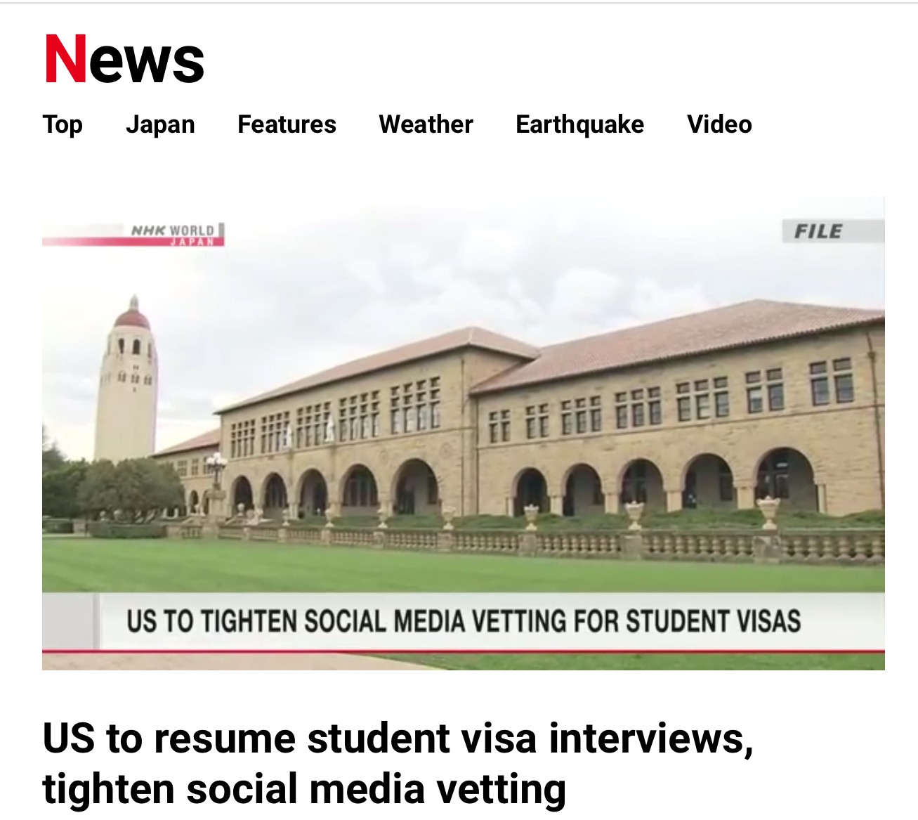 ニュースで学ぶ現代英語 25/7/8(火)予習1-米 学生ビザの面接再開へ