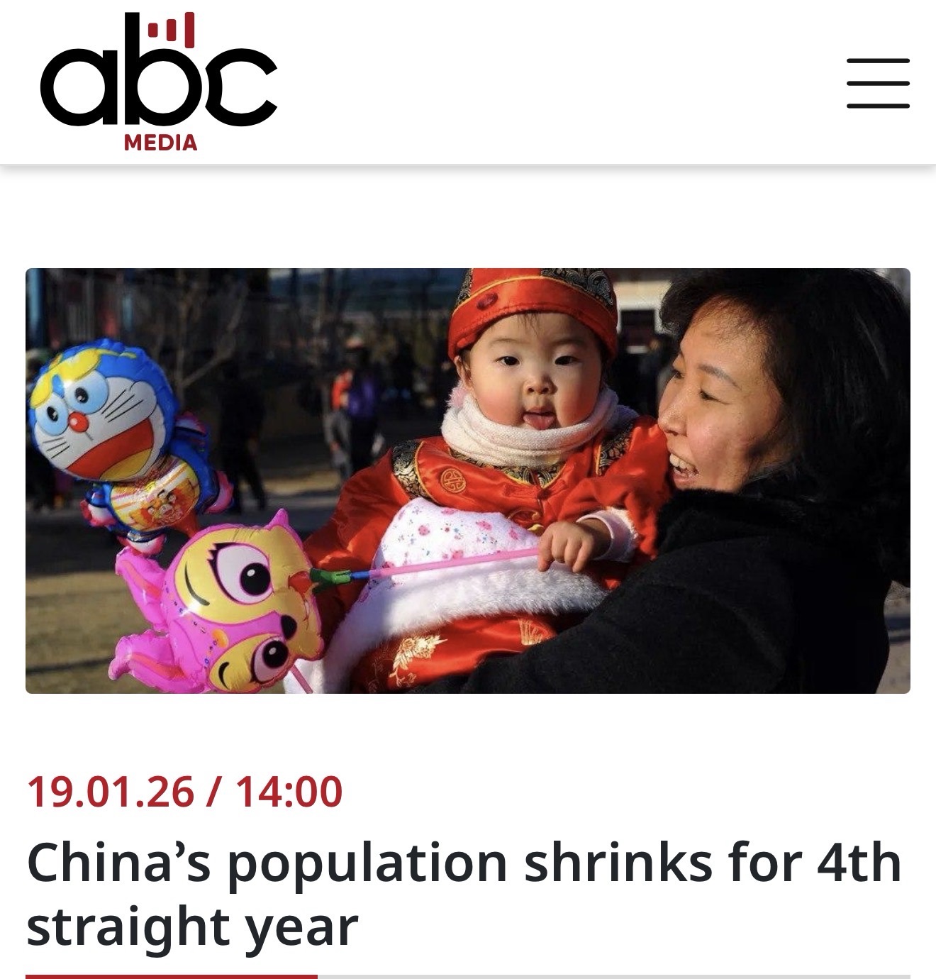 ニュースで学ぶ現代英語 26/2/3(火)予習2-復習テスト,中国 4年連続で人口減少