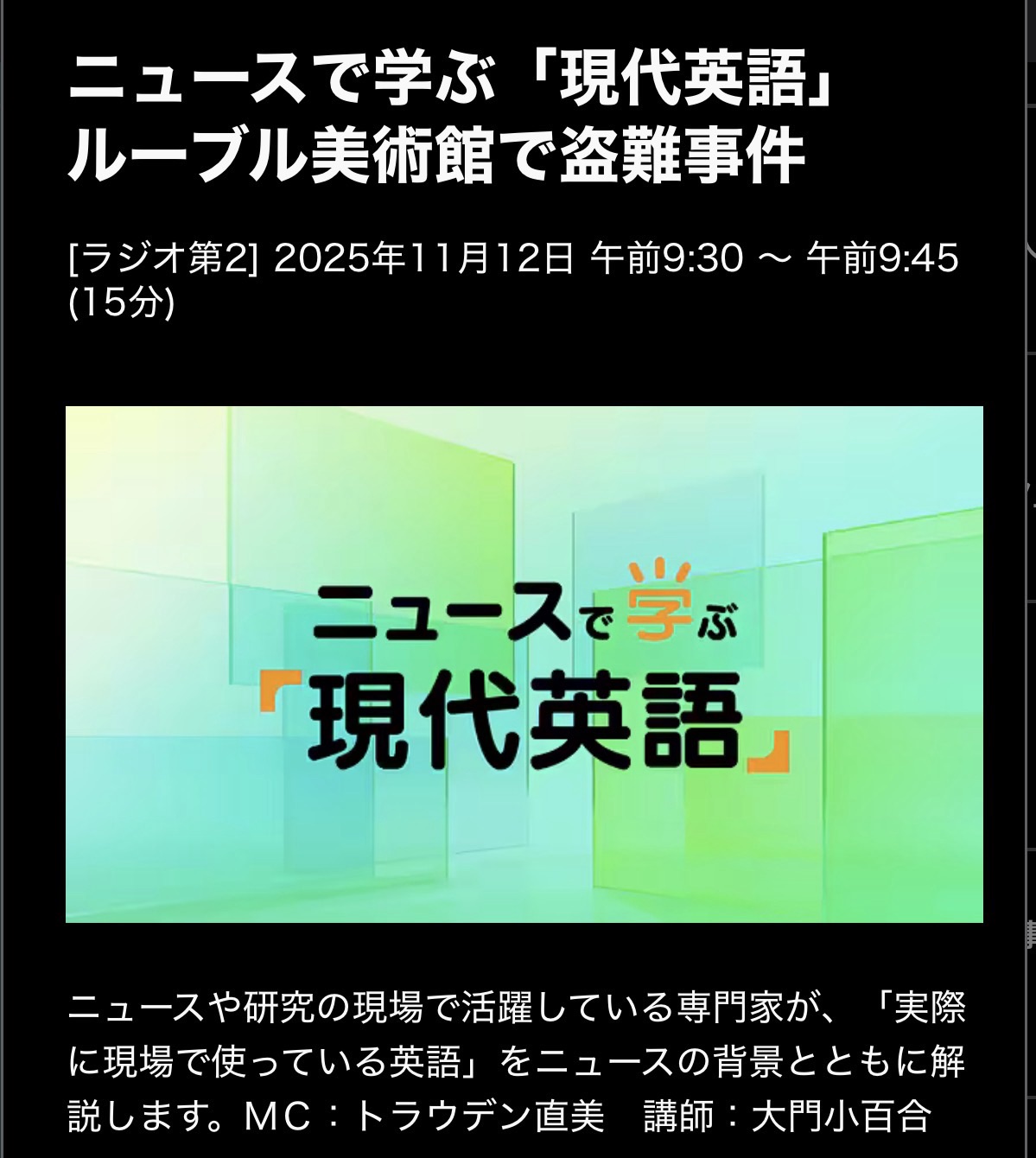 ニュースで学ぶ現代英語 25/11/12(水)ルーブル美術館で盗難事件