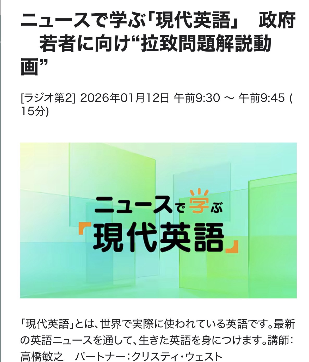 ニュースで学ぶ現代英語 25/12/8(月)政府 若者に向け“拉致問題解説動画”