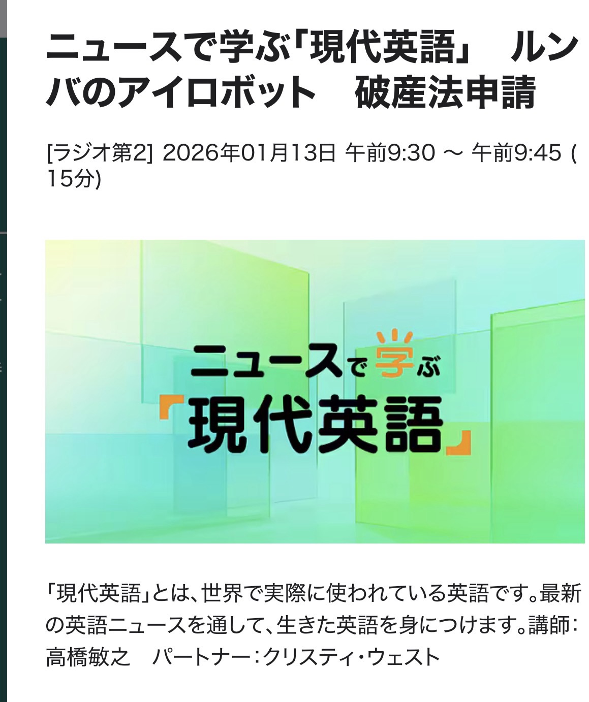 ニュースで学ぶ現代英語 26/1/13(火)復習テスト