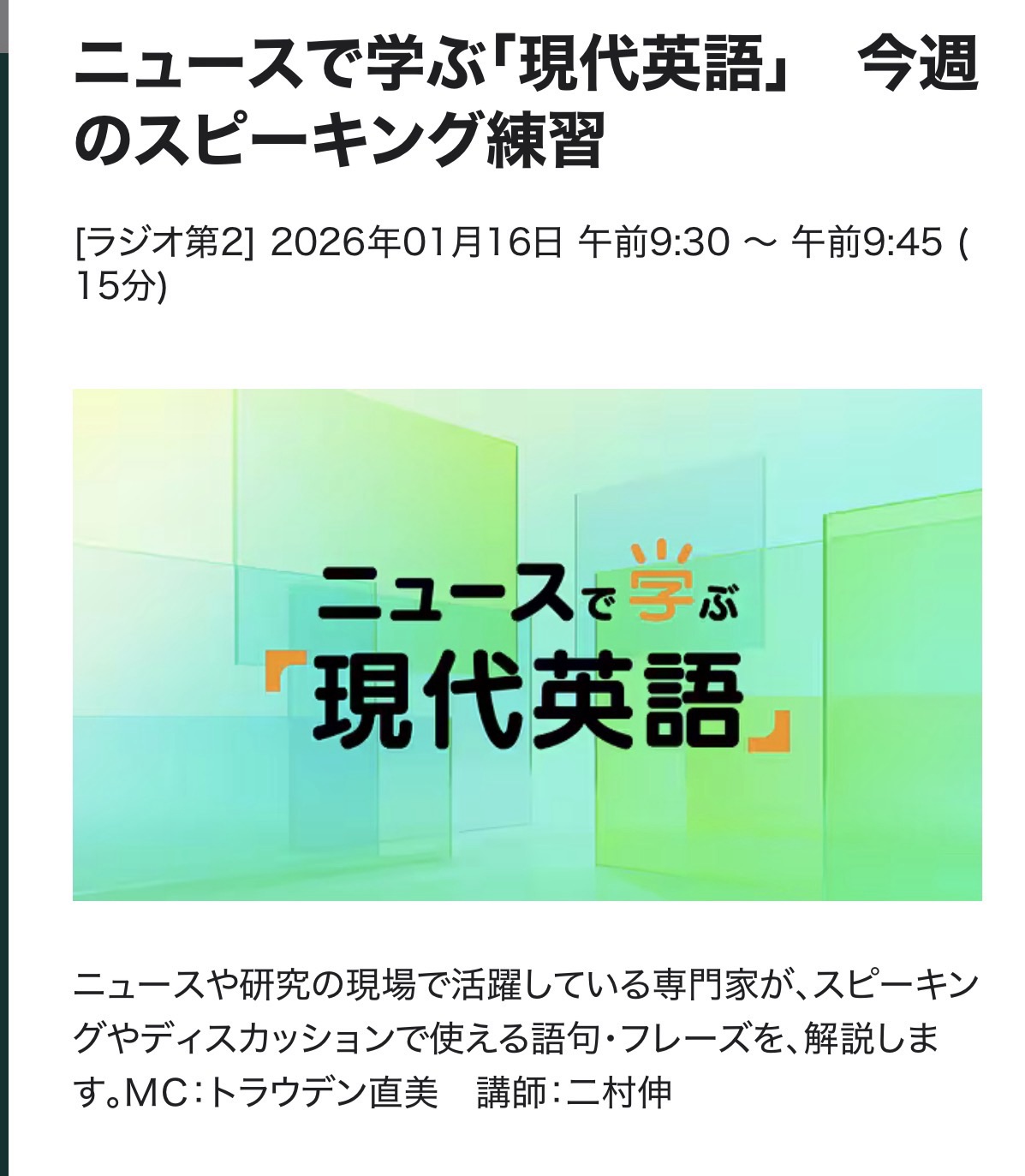 ニュースで学ぶ現代英語 26/1/16(金)復習テスト