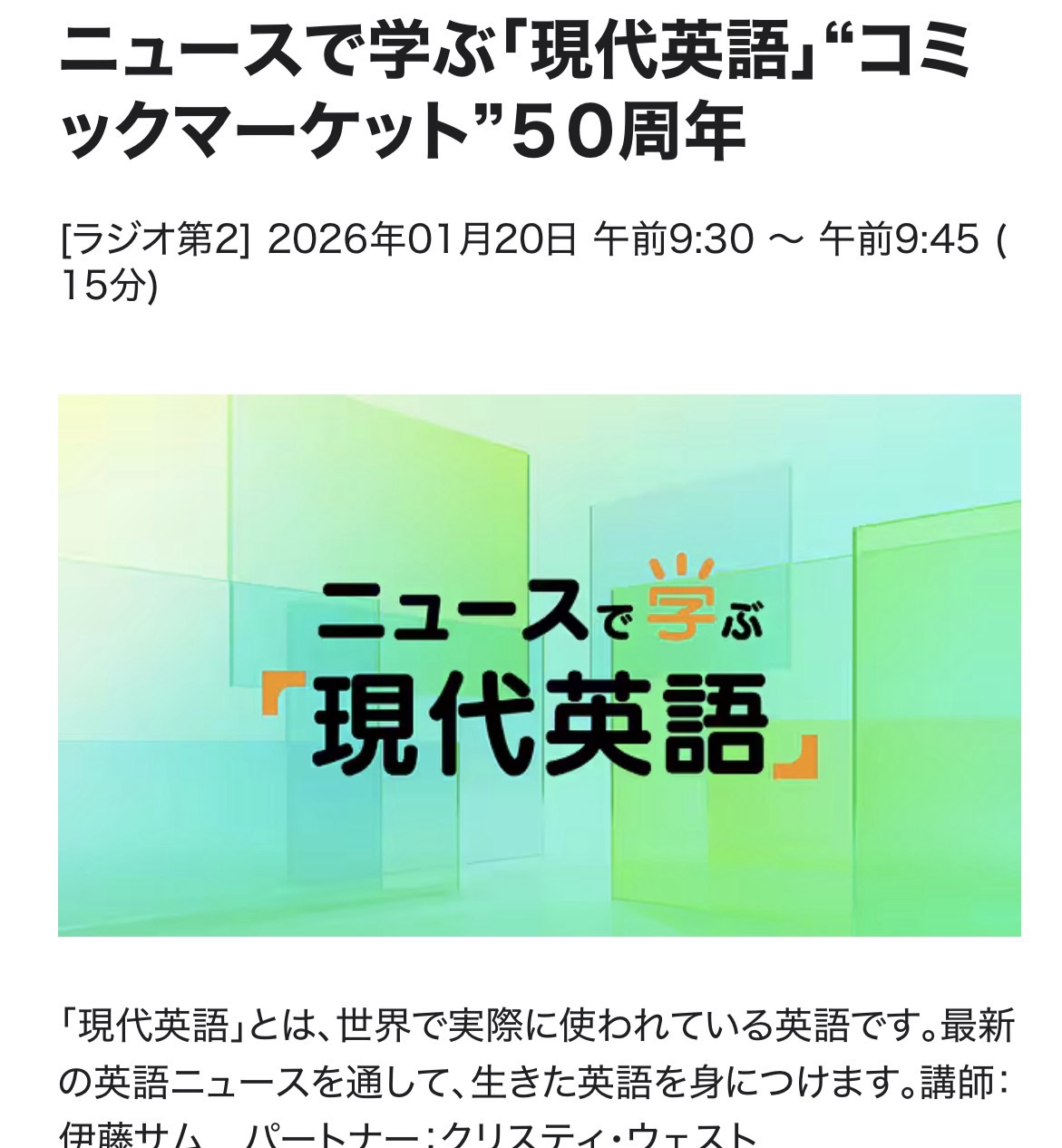 ニュースで学ぶ現代英語 26/1/20(火)復習テスト