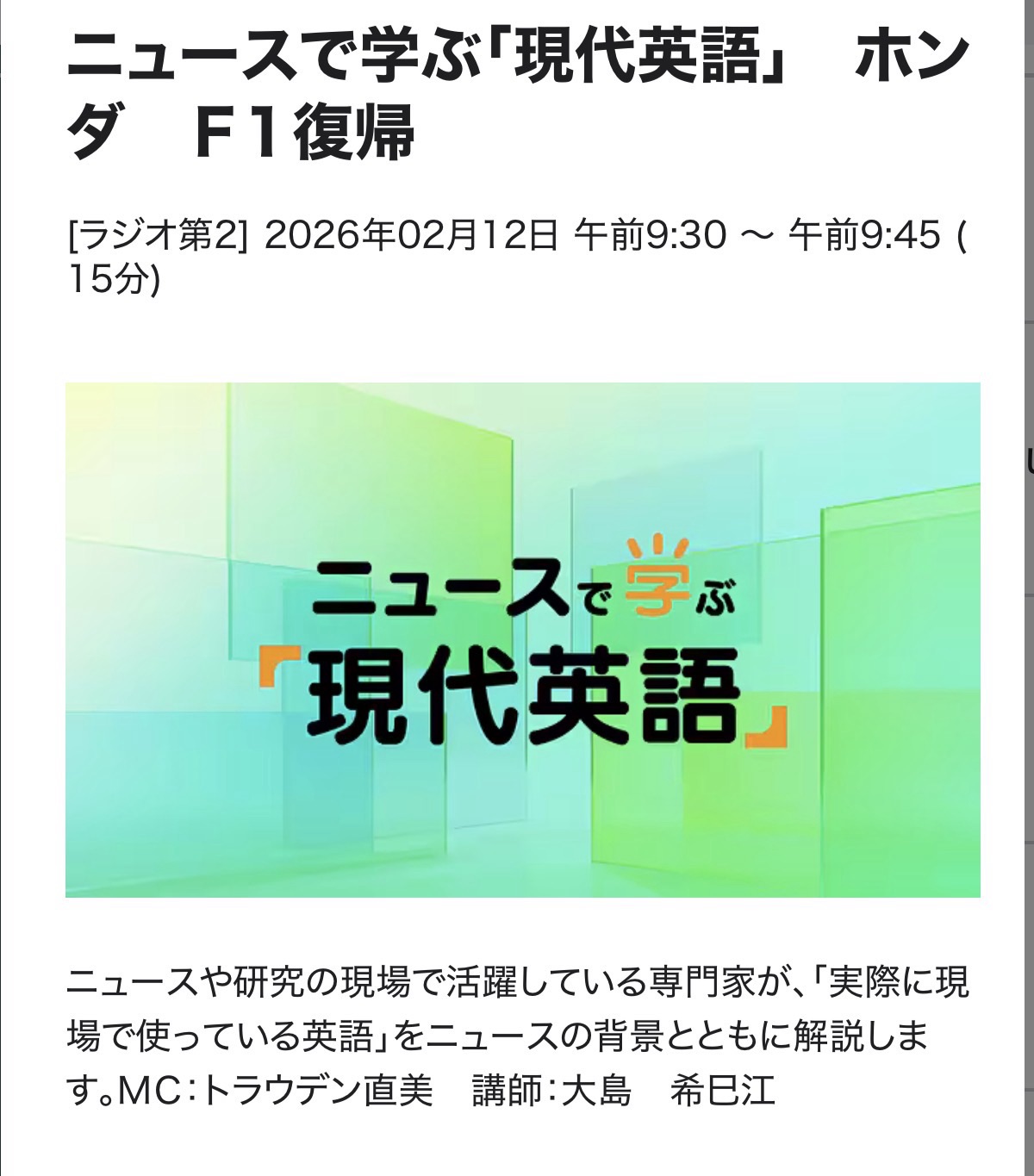 ニュースで学ぶ現代英語 26/2/12(木)ホンダ F1復帰