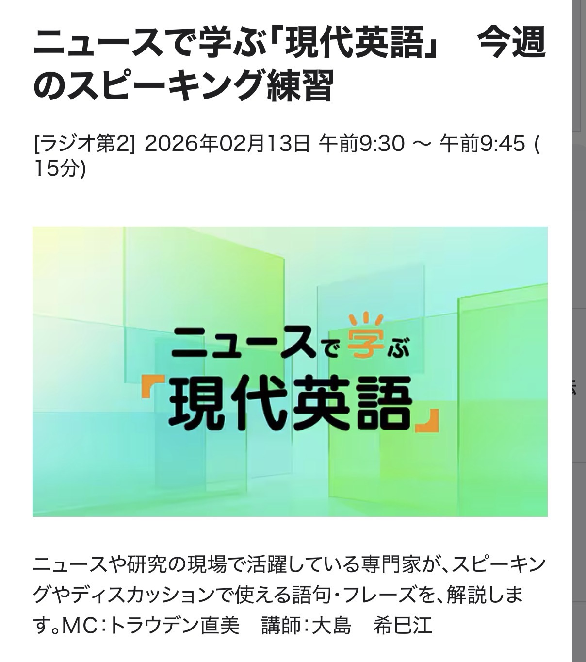 ニュースで学ぶ現代英語 26/2/13(金)今週のスピーキング練習