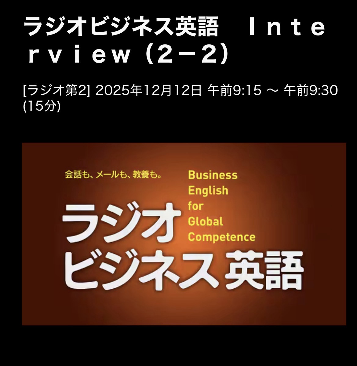 ラジオビジネス英語 25/12/12(金)I2P2 Tom Mayes トム・メイズ