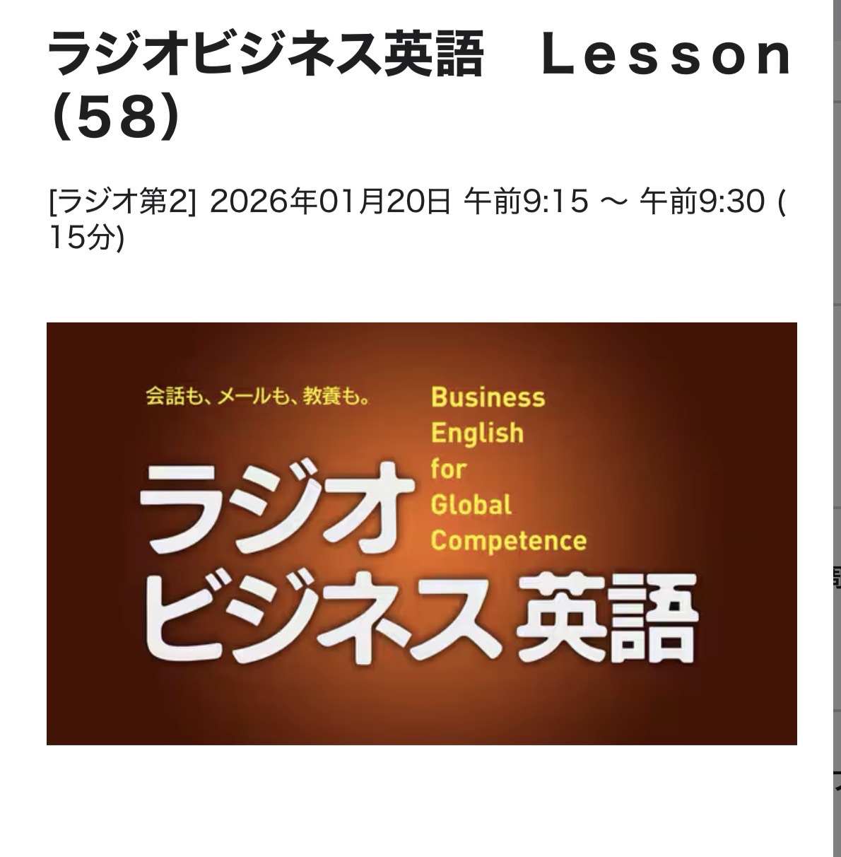 ラジオビジネス英語 26/1/20(火)L58復習テスト2