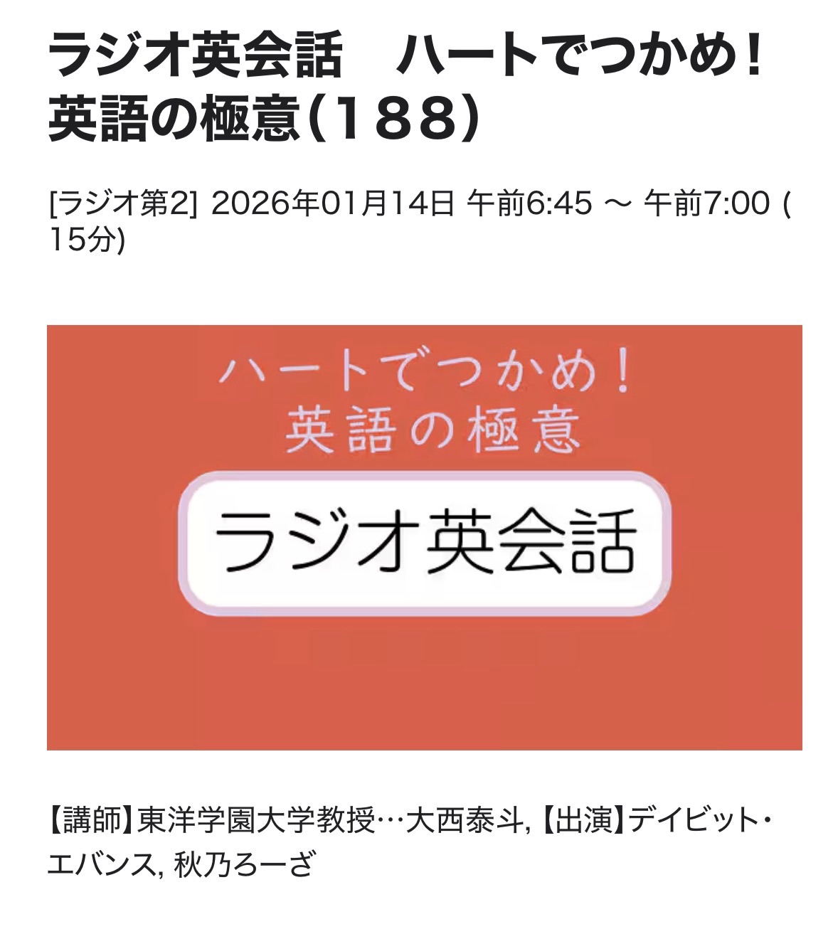 ラジオ英会話 26/1/14(水)L183 復習テスト