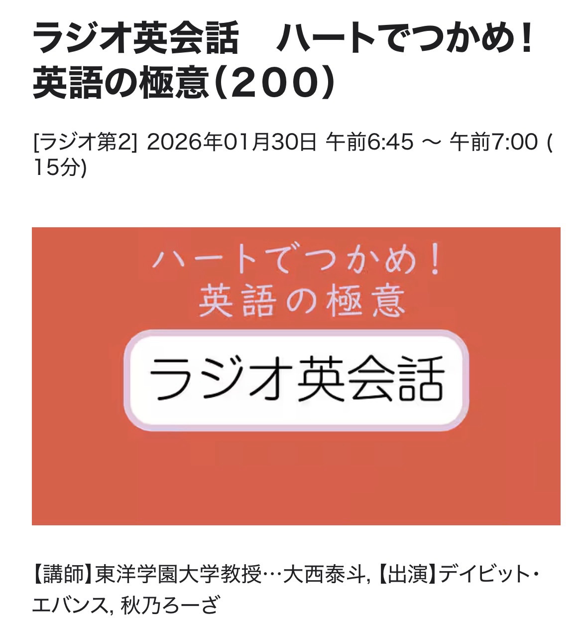 ラジオ英会話 26/1/30(金)L200今週のREVIEW