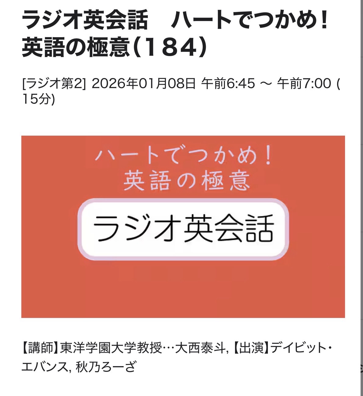 ラジオ英会話 26/1/8(木)L184 傾向を表す形容詞とto不定詞