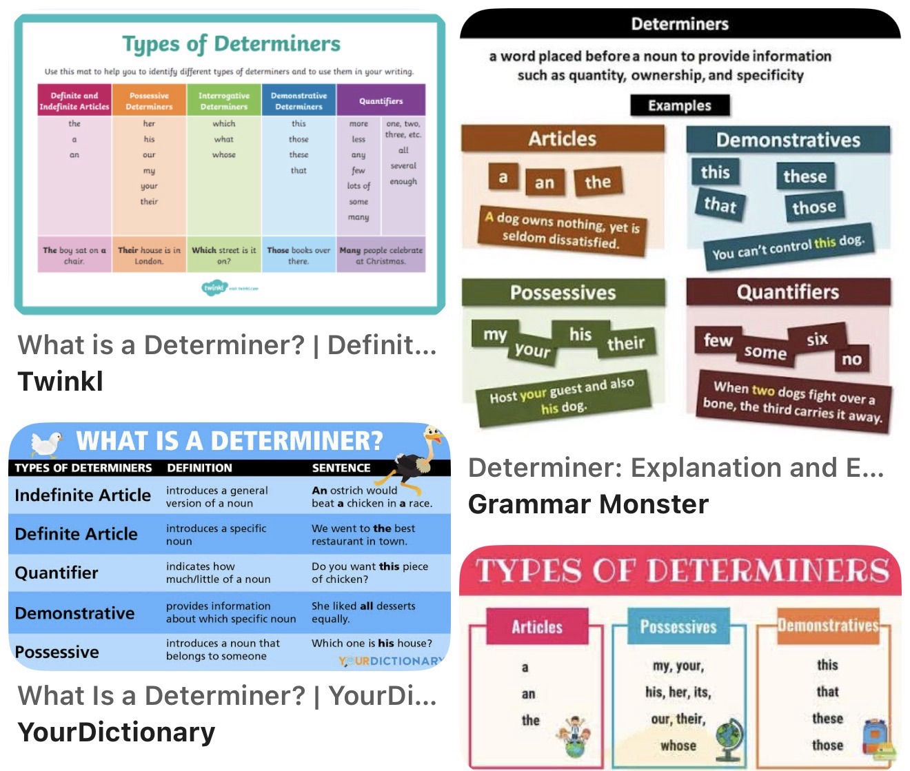 すべての冠詞は限定詞ですが、すべての限定詞が冠詞というわけではありません。 -
